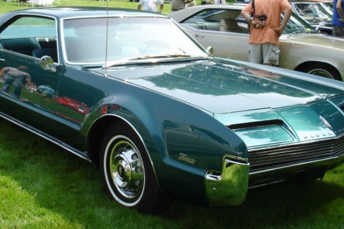 Oldsmobile Toronado: America’s first front-wheel drive mass-produced car (Cords were barely sold). A luxury saloon with a striking appearance and modern solutions in a country unaccustomed to avant-garde techniques.