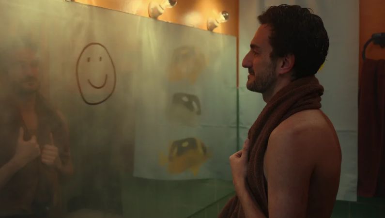His reaction to Álex’s message is reproduced between his lonely house and his office, where he interacts with his friend Albert, the straight character played by Eduardo Lloveras who acts as his confidante as he faces the decline of his own marriage with the mother of his children who She is also the daughter of her boss. Seeing him comment on it and study if he should reply to Álex’s message, we will get to know Bruno and also the circumstances that will lead him to jump into the pool.
