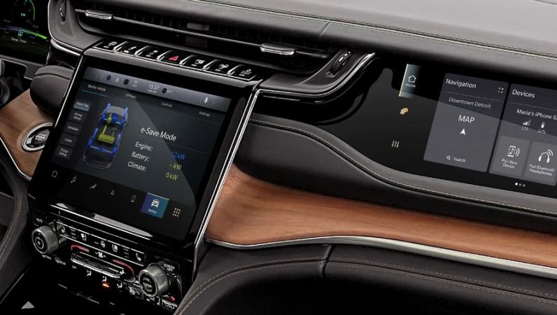 Ushering in the hybrid-electric era for the Jeep Grand Cherokee, 4xe technology is responsible for giving the “boss” new mechanical and dynamic range by combining a direct injection turbocharged I-4 engine, with two electric motors powered by a 400-volt battery. Added to this combo are technologies and driving systems such as: